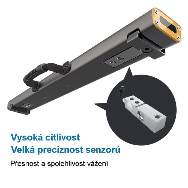 max. váživost 3000 kg, dílek 1000 g, praktická ližinová váha s délkou 800 mm a velmi nízkou hmotností – hmotnost jedné ližiny je pouhých 5 kg, šířka 80 mm, výška 55 mm. V ceně sestavy je zobrazovací / ovládací terminál – komunikace mezi ližinami a terminálem probíhá prostřednictvím Bluetooth.