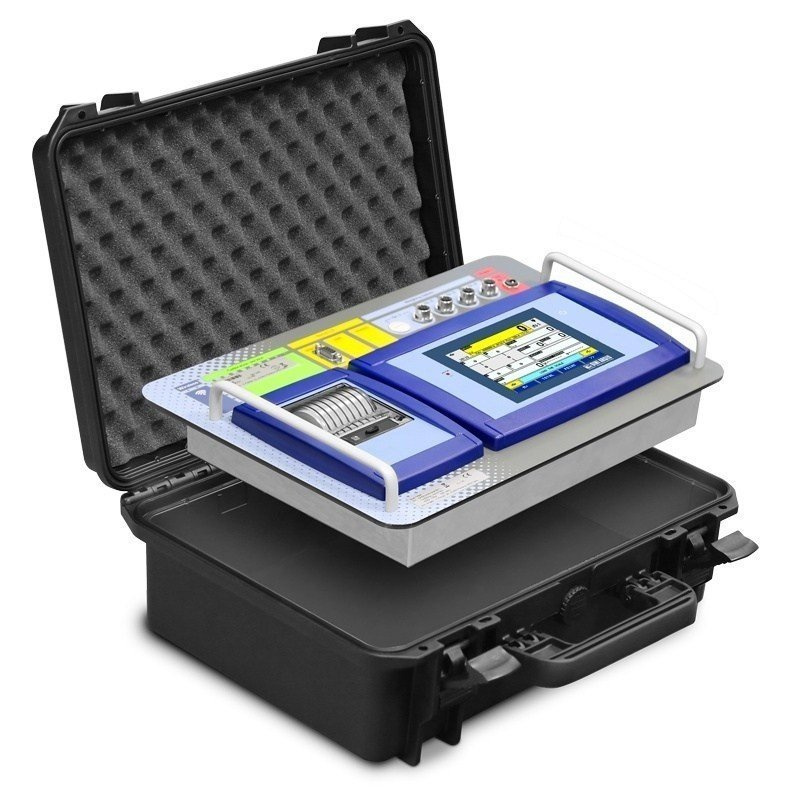 Indikátor 3590ETKR09-3 s vestavěnou tiskárnou je umístěn v praktickém kufříku, k indikátoru je možné připojit až 4 ks vážicích platforem, barevný dotykový displej, komunikační rozhraní RS-232.