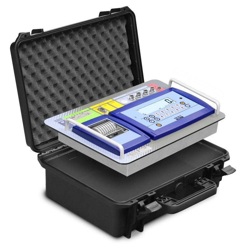 Indikátor DFWKRPRF s vestavěnou tiskárnou je umístěn v praktickém kufříku, k indikátoru je možné připojit až 20 ks vážicích platforem, LCD displej s výškou číslic 25 mm, komunikační rozhraní RS-232.