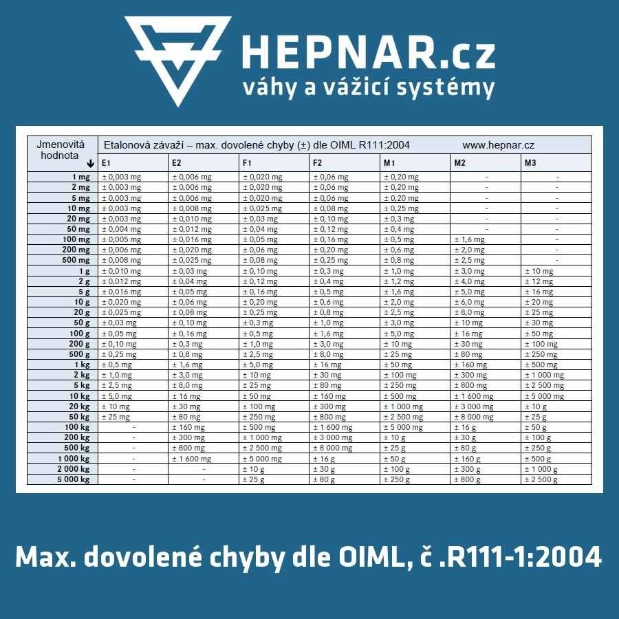 Všechna námi dodávaná etalonová závaží splňují parametry normy OIML, číslo R111-1:2004.
